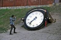 Часы на клумбе установили на земляной насыпи, ведущей от церкви к источникам в Саржином яру на Павловом Поле. Часы, п...